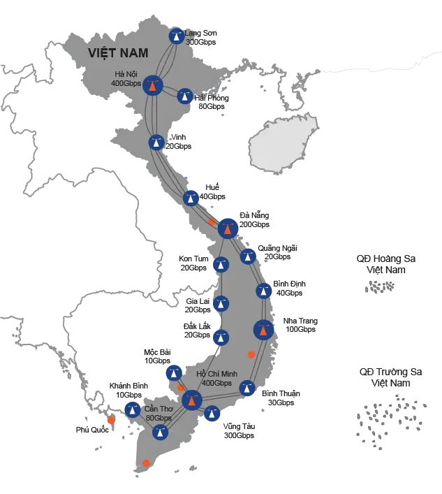 - 1,2 Tbps dung lượng băng thông quốc tế
